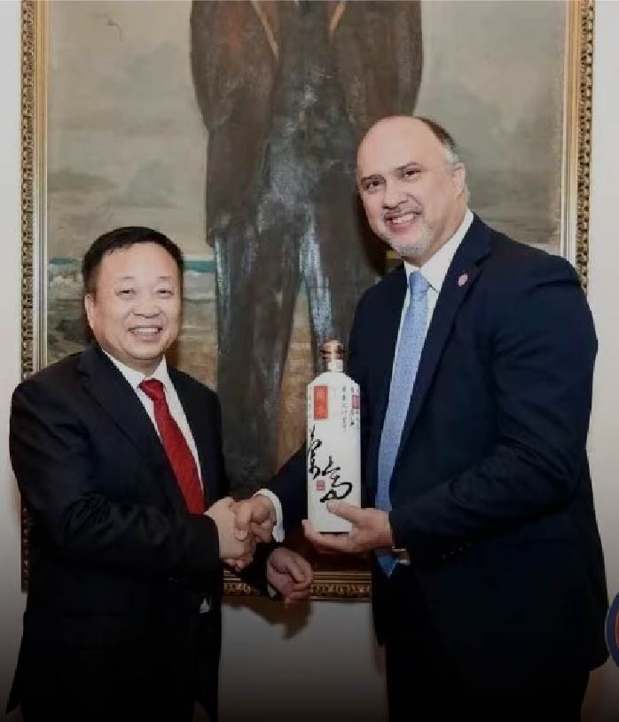 2020年适逢中古建交60周年兰亭酒亦作为友谊的信物,赠予古巴驻华大使佩雷拉。
