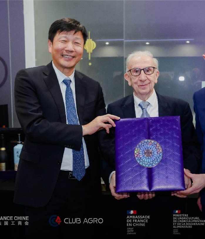2025年,法国总统马克龙第四次访华,爱丽舍宫发布的官方礼单上,法国香槟品牌佳醍亚联合会稽山·兰亭的“法中醇和”礼盒位列“1号国礼”,见证中法情谊。
