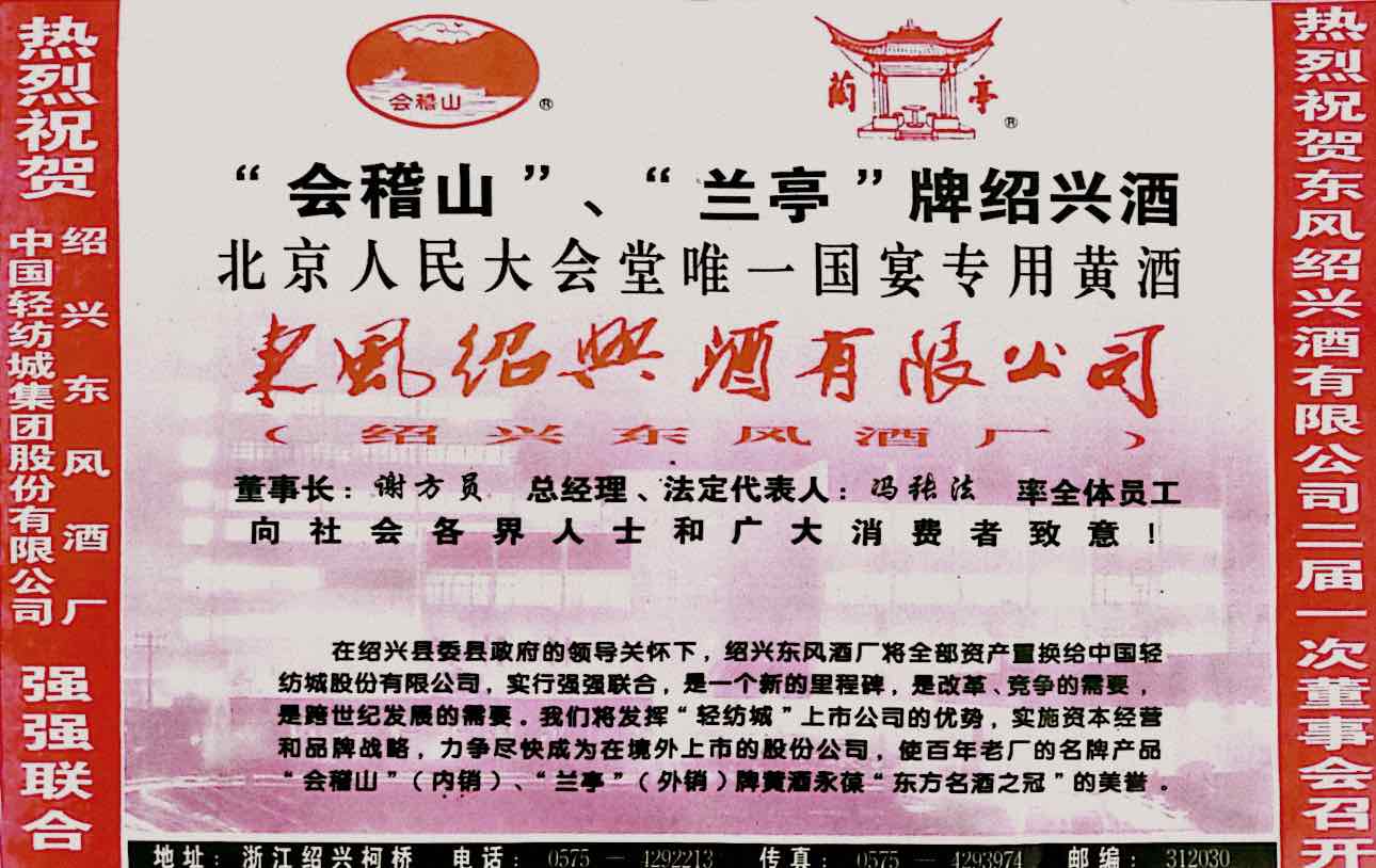 In the early 1990s, a selection was conducted to identify outstanding Shaoxing yellow wines suitable for service at the highest national level. Following a formal tasting and evaluation among three leading Shaoxing producers, including Dongfeng Winery (the predecessor of Kuaijishan), only Dongfeng Jiafan Yellow Wine was chosen. It was subsequently delivered to Beijing and served at the table of Deng Xiaoping.